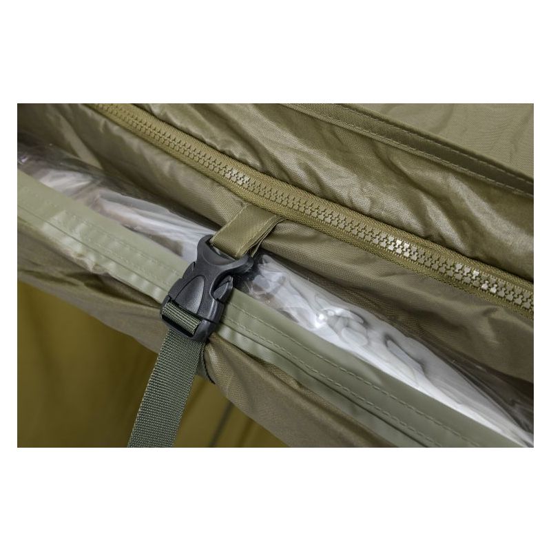 Potpuno pokriven kišobran četvrtastog oblika golemih proporcija. U njega se mogu smjestiti dvije velike ležaljke. Dimenzije kišobrana u potpunosti su prilagođene dizajnu i korištenim materijalima. Okvir je izrađen od čvrstih i fleksibilnih rebara od stakloplastike, koji osim velike krutosti i stabilnosti osiguravaju veliku izdržljivost. Ovo je posebno važno kod jakih vjetrova, kada bi standardna žičana rebra bila deformirana ili potpuno uništena. Visokokvalitetni najlonski pokrov nudi vrlo malu težinu, beskompromisan vodeni stupac od 8000 mm i potpuno zalijepljene šavove. Bočna strana pričvršćena je sa svih strana robusnim patentnim zatvaračem, prekrivenim rubom za okapanje. Prednja ploča, s velikim prozorom, može se lako otvoriti i smotati. U vjetrovitim uvjetima, kišobran se može stabilizirati pomoću četiri užeta za sidrenje. Ovaj kišobran dolazi s kompletom čvrstih klinova za savršeno sidrenje čak i u teškim uvjetima. Izvrstan dodatak ovom kišobranu je jedinstveni stabilizacijski komplet za ekstremne uvjete, dostupan zasebno.