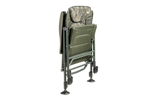 Luksuzna verzija naše najprodavanije fotelje Comfort Quattro s ultra udobnim madracem od flisa u modernom dizajnu CamoCODE. Koristi popularan i potpuno pouzdan sustav preklapanja naslona prilikom podizanja naslona za ruke. Izgrađen je na iznimno laganom i krutom aluminijskom okviru nosivosti 160 kg. Fotelja ima novorazvijena blatna stopala i nove brave za noge u jedinstvenom Mivardi dizajnu. Četiri teleskopske noge koje se same otvaraju mogu se jednostavno kontrolirati kratkim pritiskom na polugu za zaključavanje.